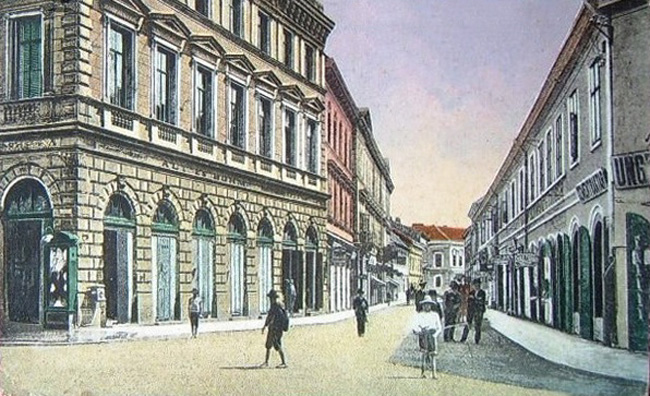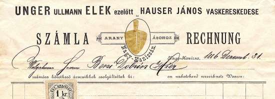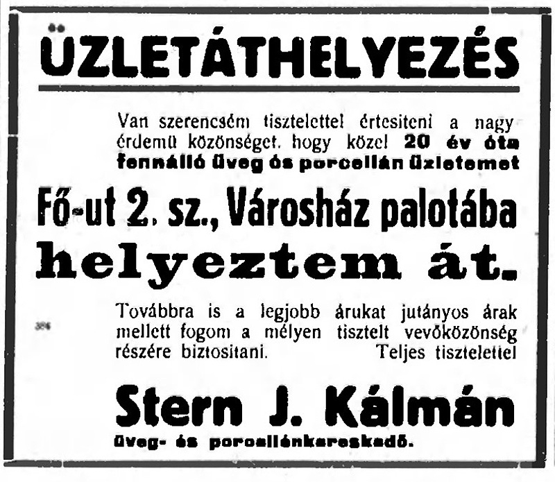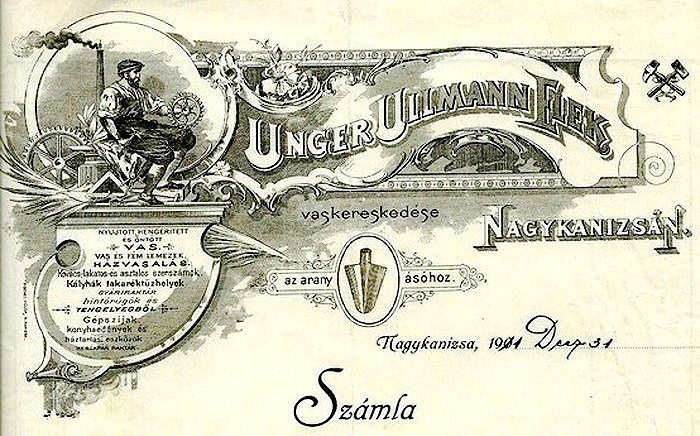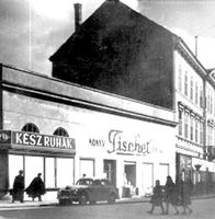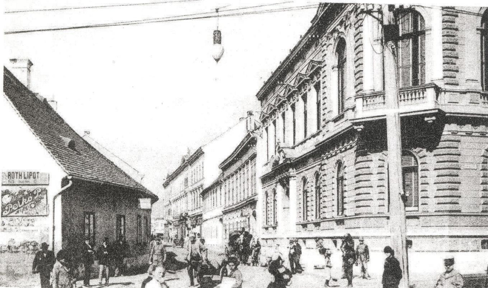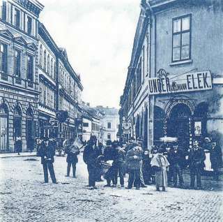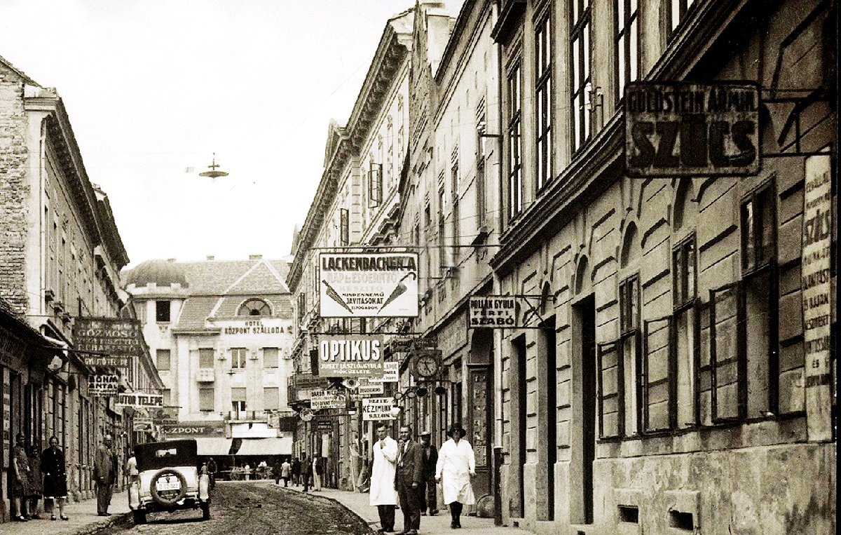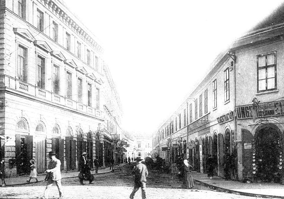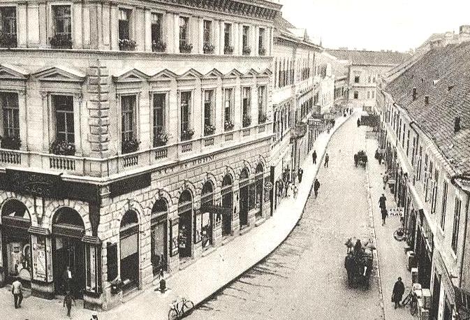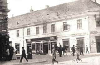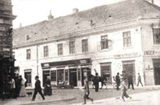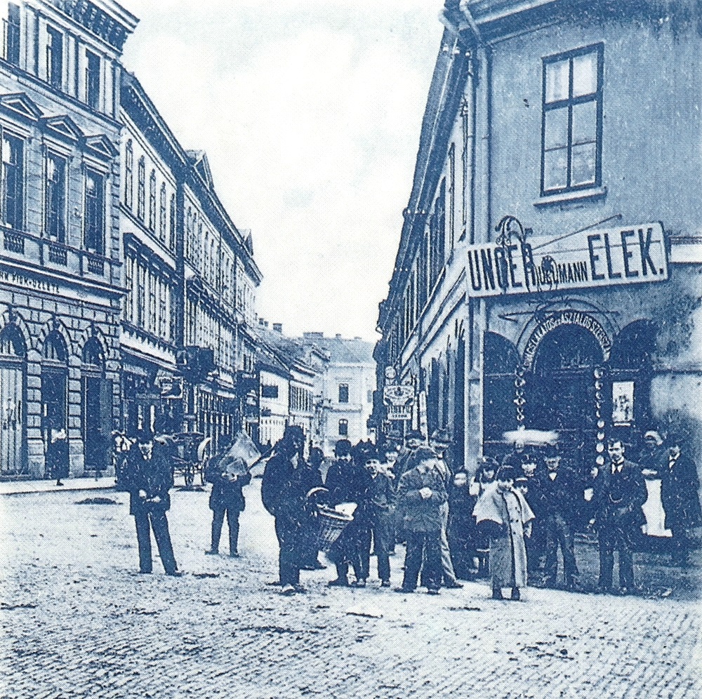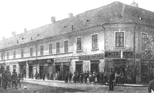 (A Vasemberház sarkán idősebb Unger Ullmann Elek vaskereskedése.)