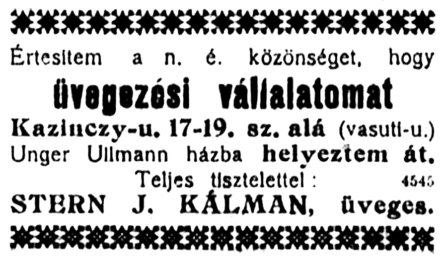 Egy 1865-ös hirdetés szerint a "távsürgönyző hivatal" költözik ki az Iván utca 480. számú házból. A gond ezzel az, hogy az akkori kataszteri térkép szerint a 480. számú ház a Batthyány utcában volt (ma Batthyány utca 6.). Igaz, a telek folytatása a Csengery útig nyúlt, de ott a 486. számú ház (ma Csengery út 13.) állt.