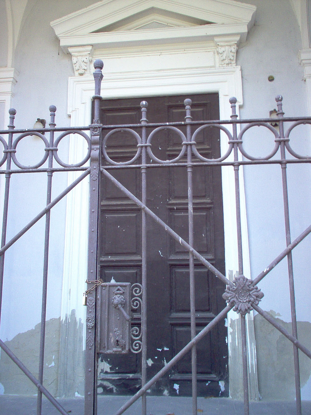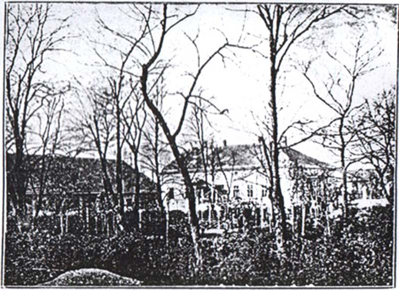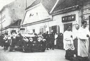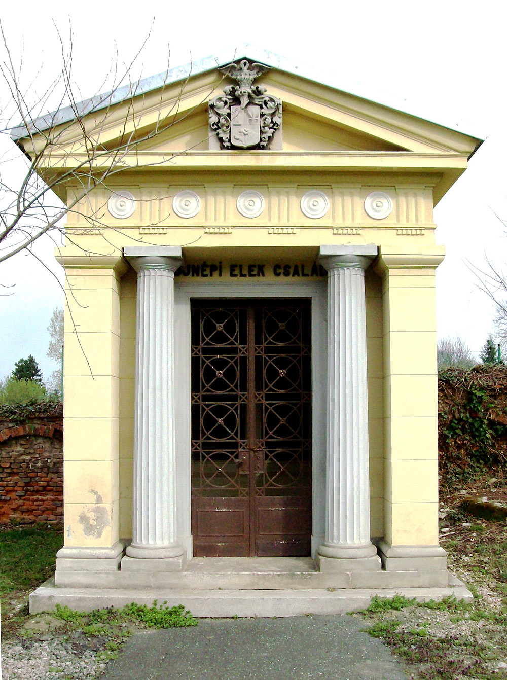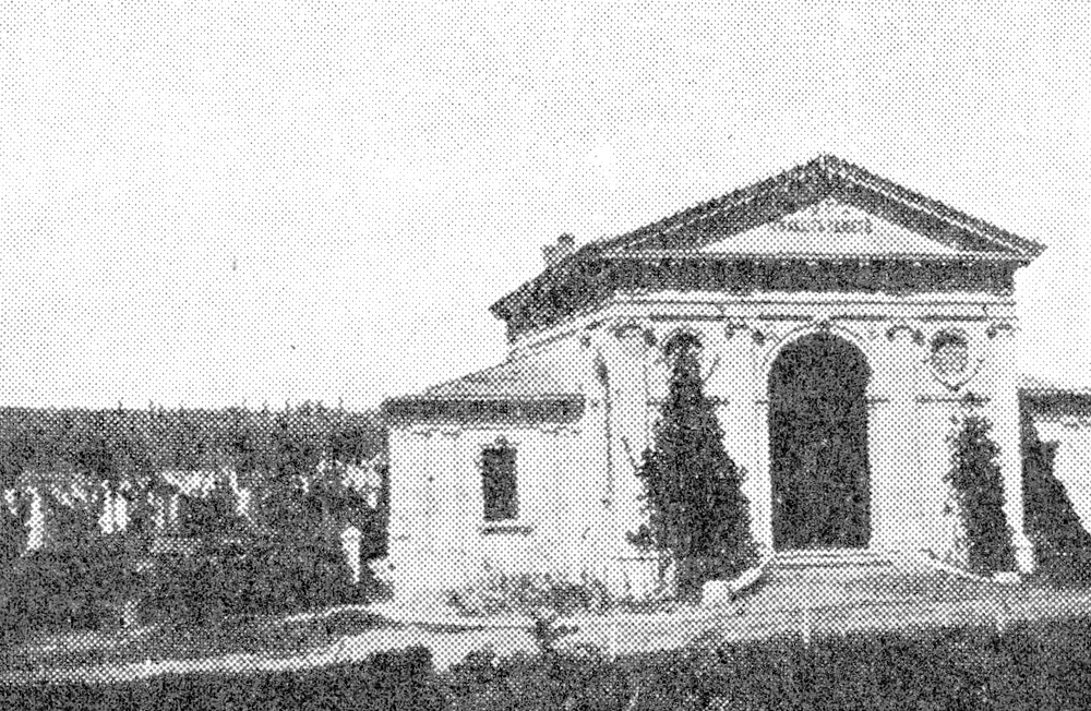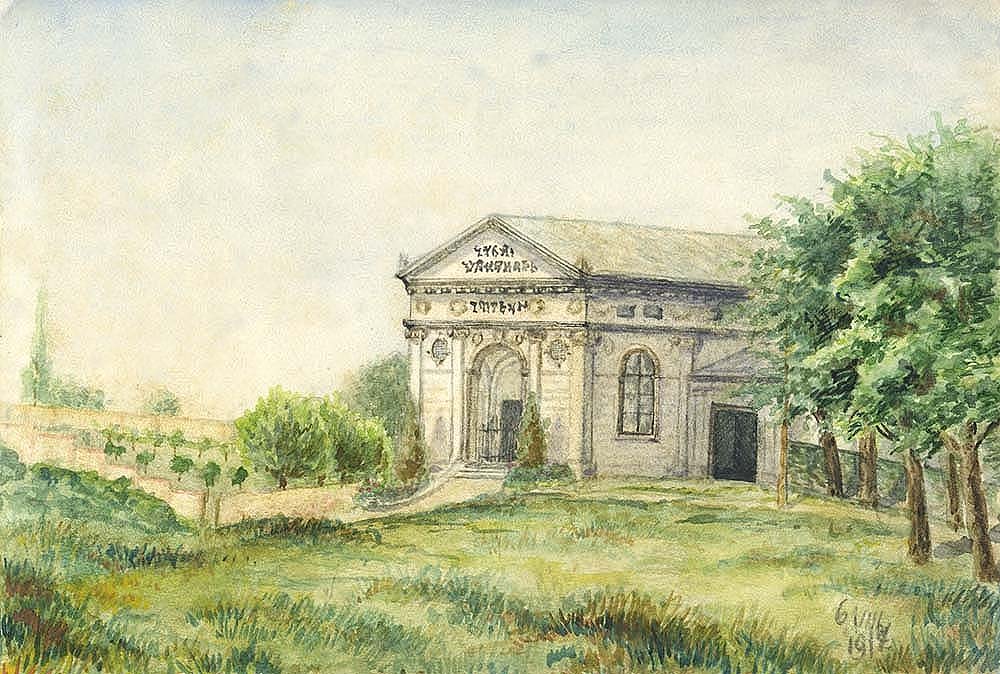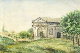A korai ábrázoláson a háttérben a temető nyugati oldalának ma is létező boltíves kerítése