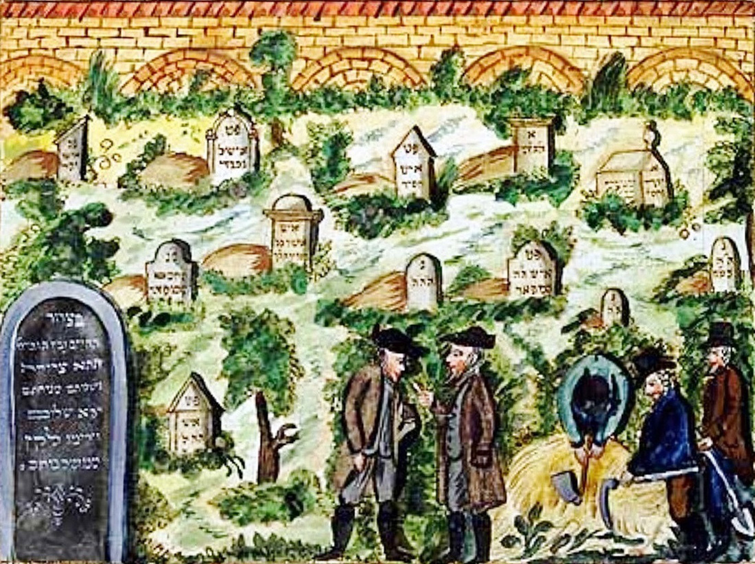 (A kép a kanizsai Chevra Kadisa [Szentegylet] könyvében található, amelynek borítóján az 1793-as dátumot fedezhetjük fel. A kéziratot a Zsidó Múzeum őrzi Budapesten.)