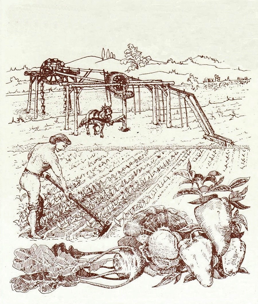 Tevékenységük jelképévé az öntözés eszköze, a bolgárkerék vált; egy ökör vagy ló hajtotta vödrös-csigás szerkezet. Felállították a víz mellé és a vele néhány méterre felemelt vizet deszkavályúkkal, bakhátakkal sík vidéken is nagyobb távolságokra el lehetett vezetni.