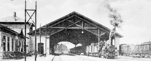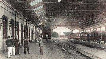 A bal oldali képen a Déli Vasút 1864-ben állított díszes emlékoszlopa is látható
