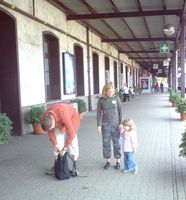A Déli Vasút vonala megnyitásának 1986-os emléke a peronon