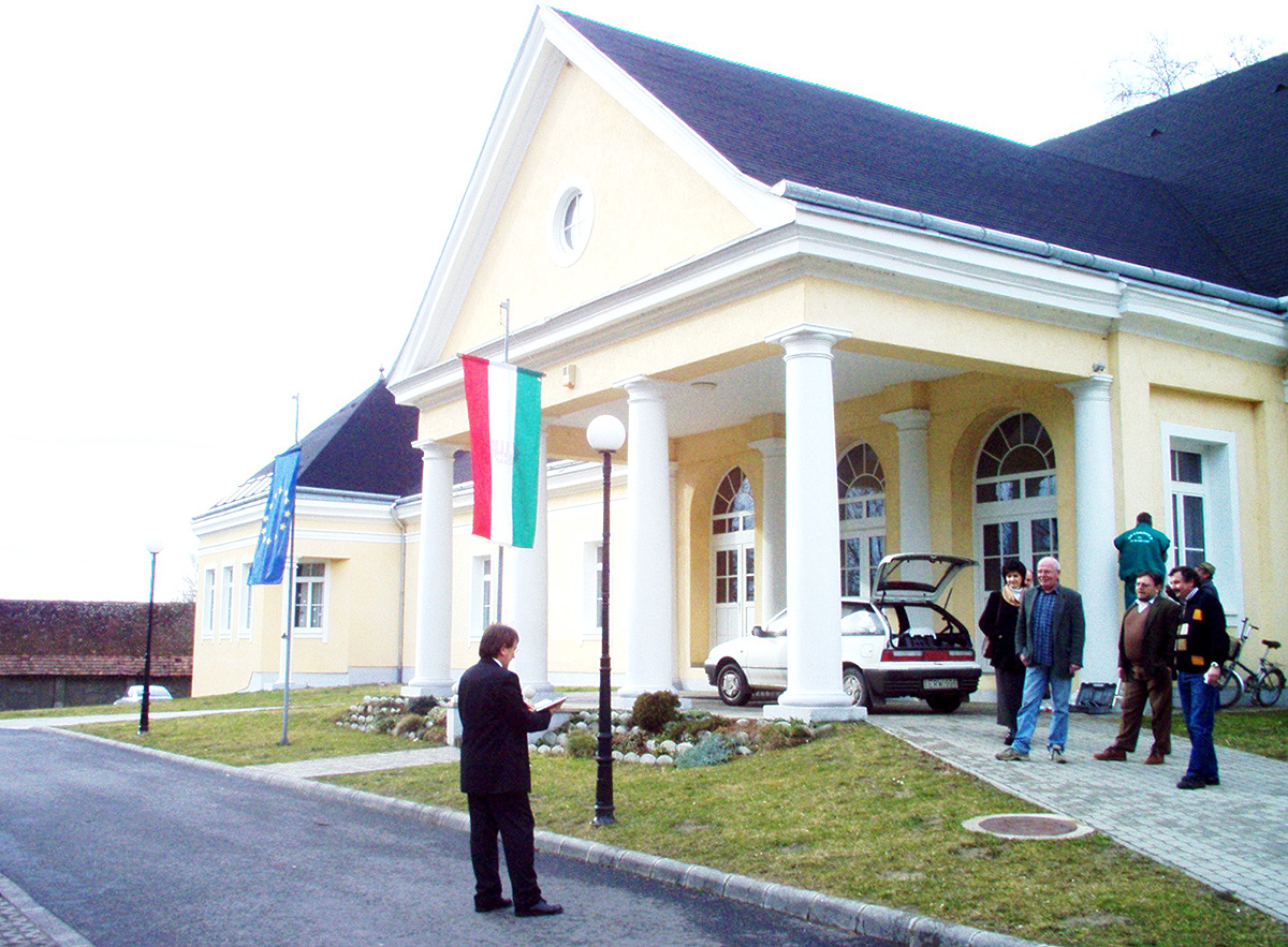 Az iskolává alakított épület 1999-es felújítása előtt és után