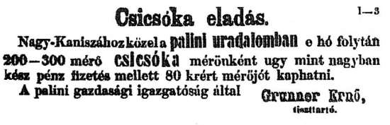 Még ekkoriban is Palinból irányították az egész uradalmat. (A jószágkormányzó Glavina Lajos [1806-1885] lett és az is maradt harminc esztendeig, 1876-ig.)