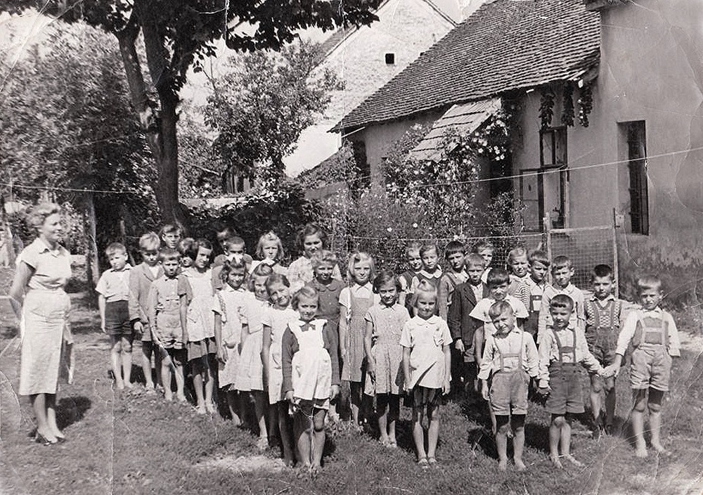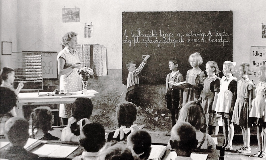 A következő két felvételen elsősök és negyedikesek az 1950-es évek közepén: