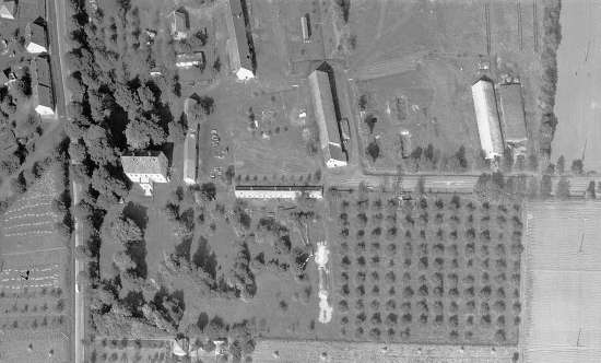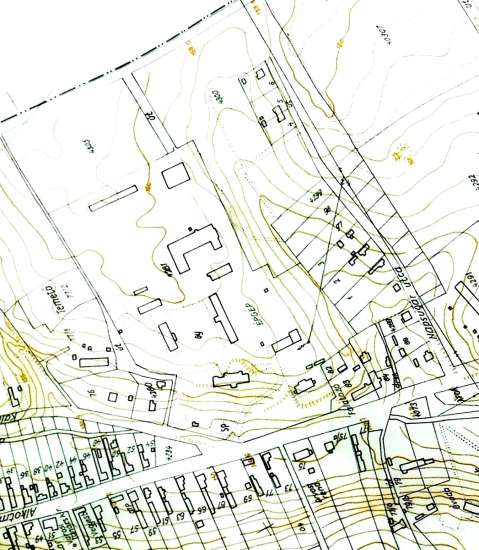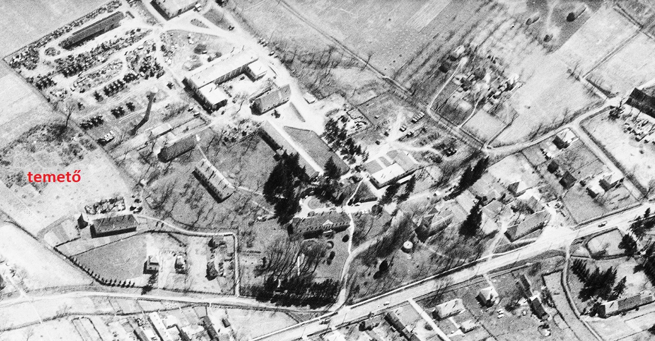 (Alul, középen a kastély [iskola], felül, középen a hajdani Elek-major [Alkotmány út 89.a].)