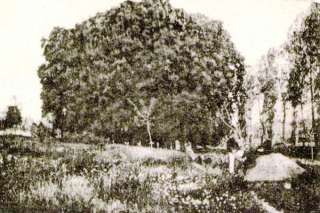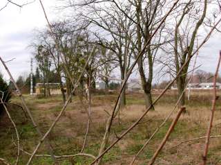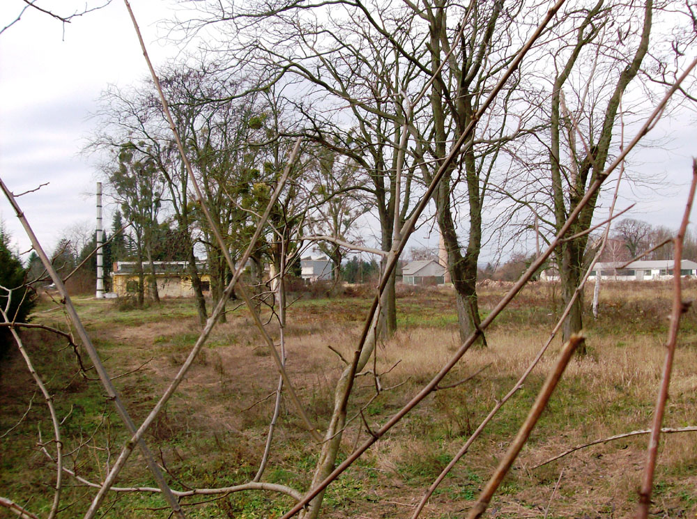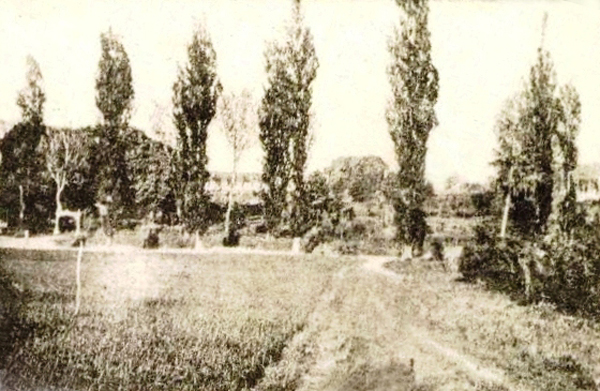 Balra az allé néhány öreg fája a kerítésen belül, jobbra egy a kerítésen túl