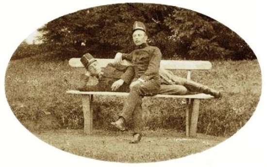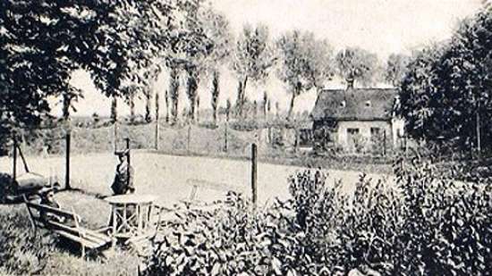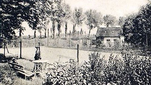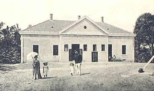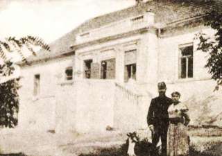 (Itt volt a parancsnoki lakás. A telep első vezetője Parcsetich Ottó kapitány volt, aki 1901-ben, negyvenhárom évesen halt meg. A középső képen talán ő látható nővére, Koller Vilma és kutyájuk társaságában.)