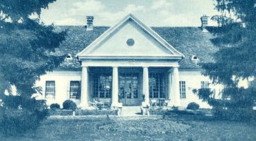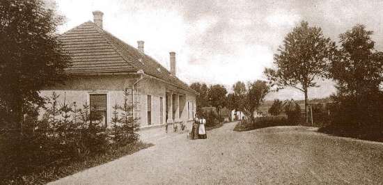 A méntelep központi épülete Rubint Károly birtokában. A korábbi képeslappal összehasonlítva látszik, hogy a házat két végén megtoldatták (feltételezem, hogy Rubint) és egy timpanon is kialakításra került.