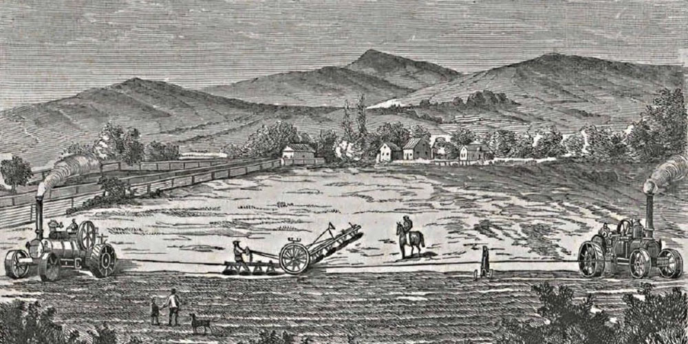 (A két gőzgép – „mozdony” – felváltva húzta drótkötéllel az