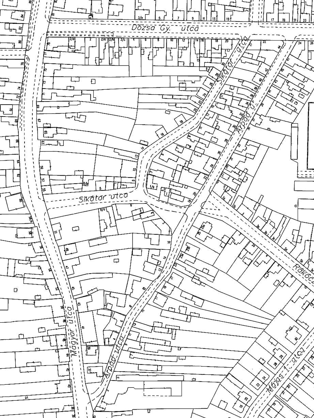 (Balra a Magyar utca, jobbra az Árpád utca felőli sarok.)