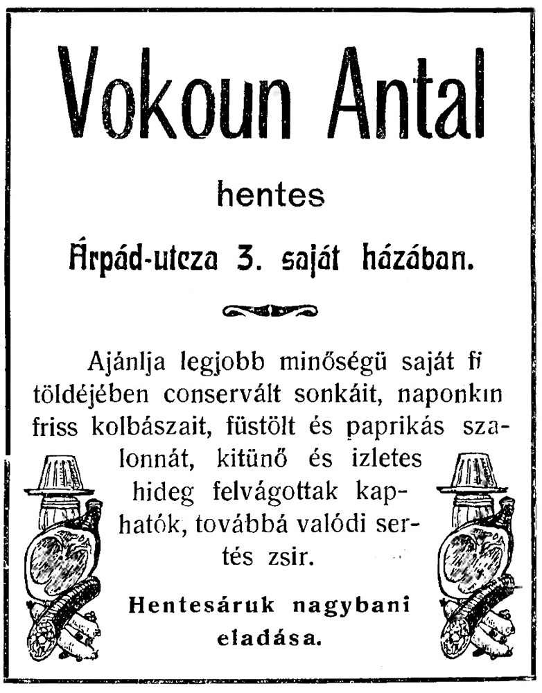 (Vokoun Magyarország iparosainak 1892-es jegyzékében már szerepel kanizsai hentesként.)