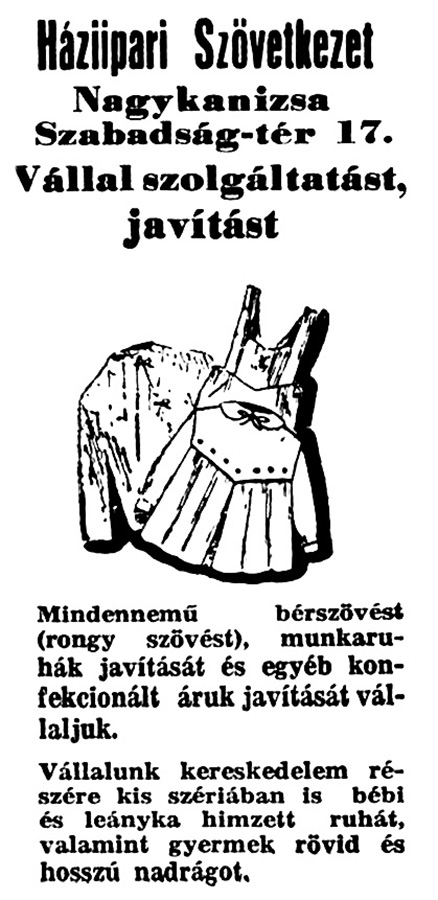 A házat 1963-ban megvásárolta a szövetkezet, amely azután 1970-ben beolvadt a Nagykanizsai Ruházati Ktsz-be. Már Kanizsa Ruhaipari Szövetkezet nevet viselt az egyesülés, amikor itt alakította ki központját.