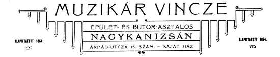•A cseh származású Muzikár Ferenc (František Muzikař ) valamikor a szabadságharc után került Kanizsára, alapított családot, lett magyarrá és a város ismert asztalosmesterévé. Könnyen lehet, hogy elsőként Marschall József asztalos közeli, Magyar utcai műhelyében talált munkát. (Kanizsára is egy Marschall hívta, aki később fia, Vince keresztapja lett.) 1892-ben, élete 66. évében halt meg.