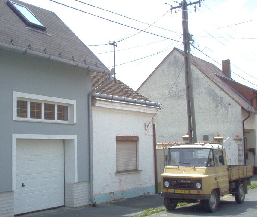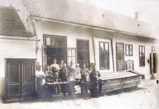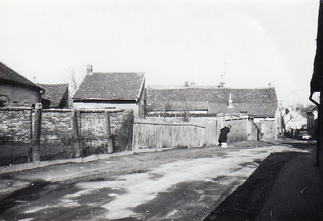(A fotón a kapu mögött, a fal eresz alatti részén még ott függ a sötétre öregedett cégtábla. MUZIKÁR FERENCZ neve két oldalán az ASZTALOS, illetve a TISCHLER szavak és köztük egy szekrény ábrája tájékoztatta az érkezőt, hol jár.)