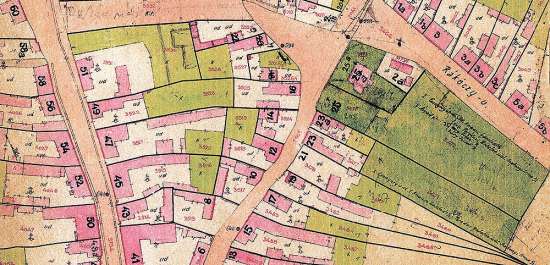 (Balra: Árpád utca 8. és 10. Jobbra: Árpád utca 14. és keresztben, hosszan a 16. számú ház.)