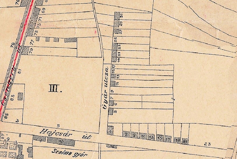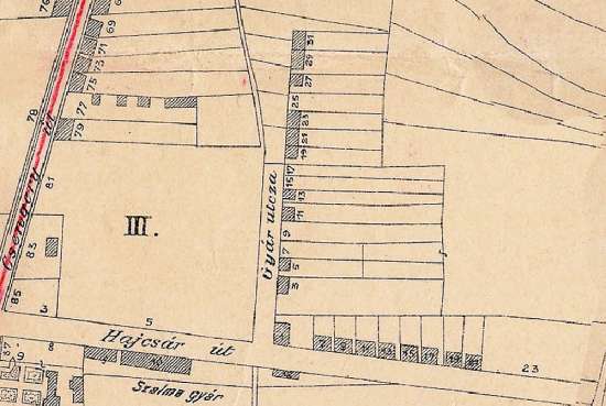 •A Babochay (korábban, 1900-tól Gyár) utca a 19. század utolsó évtizedében kezdett kiépülni az Erdész utca felől.