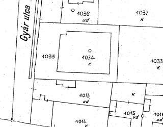 (Az udvar jóval nagyobb, mint manapság, mert Steiner birtokolta a 15. számú telket is.)