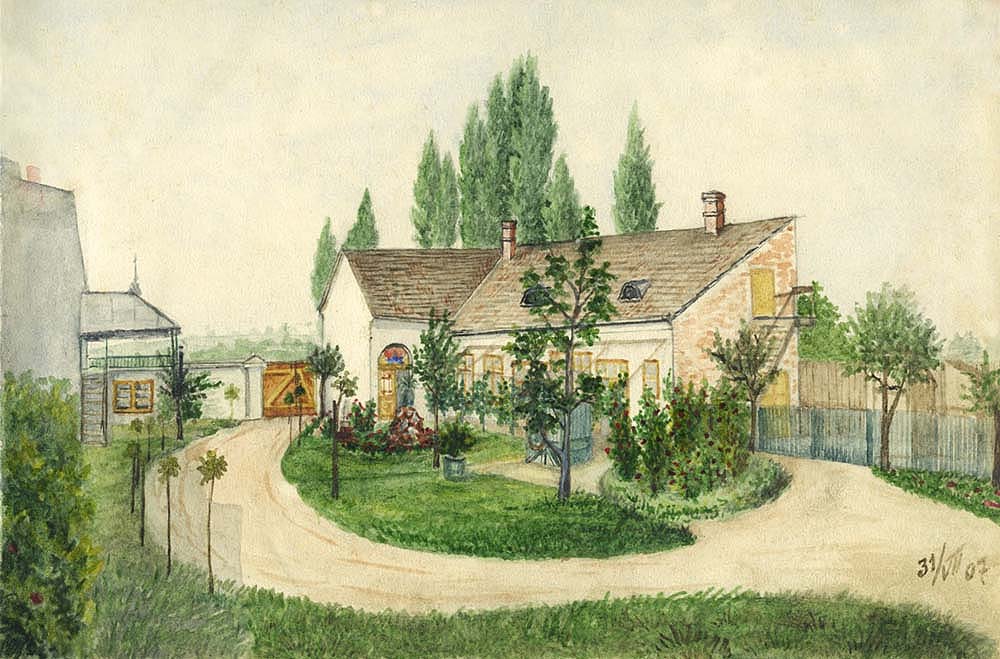 Steiner Edgár két 1907-es vízfestménye házának udvari részéről