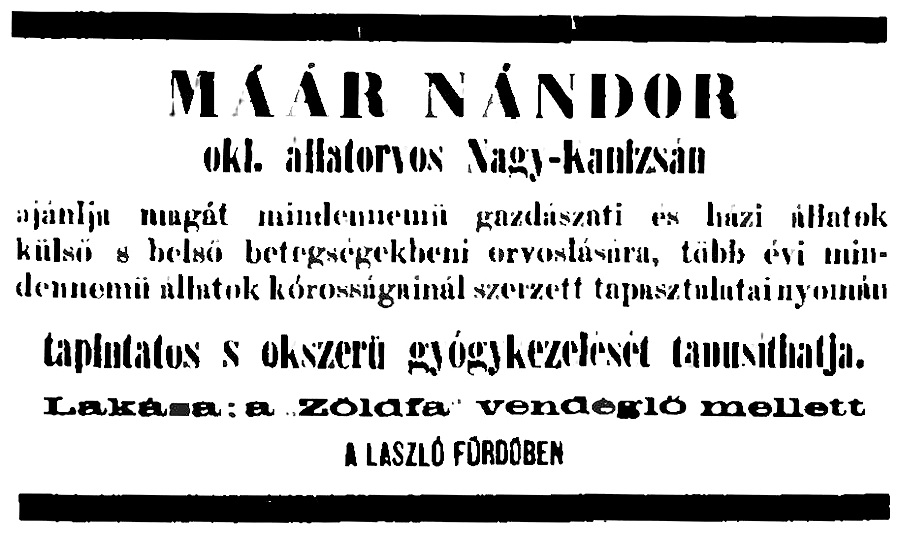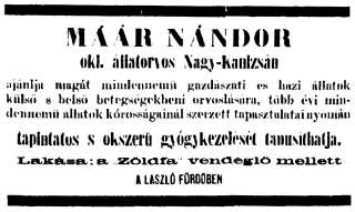 •Maár Kanizsára érkezésekor volt már „állatgyógyász” a városban. A helyi újságban csak vezetékneve maradt fenn: Haberle.