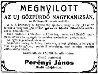 •A hajdani 4. szám alatt működött 60 évig Bisztricsányi János (hatvanhat éves volt, amikor 1872-ben meghalt) „sebész” (borbély) 1845-ben épített László fürdője. Nevét Csány László tiszteletére adta gazdája 1848 tavaszán.