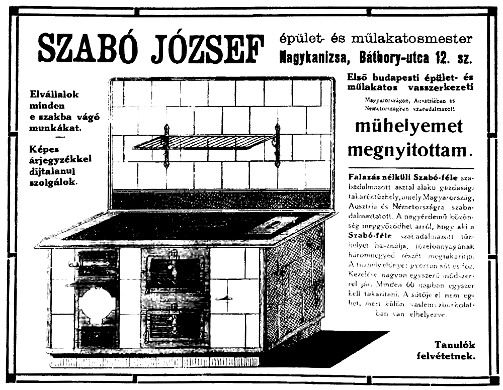 •1920-as adat szerint az udvarban volt Szabó József, 1882-ben született épület- és műlakatos műhelye. Önmagát a Szabó-féle szabadalmaztatott takaréktűzhellyel reklámozta.