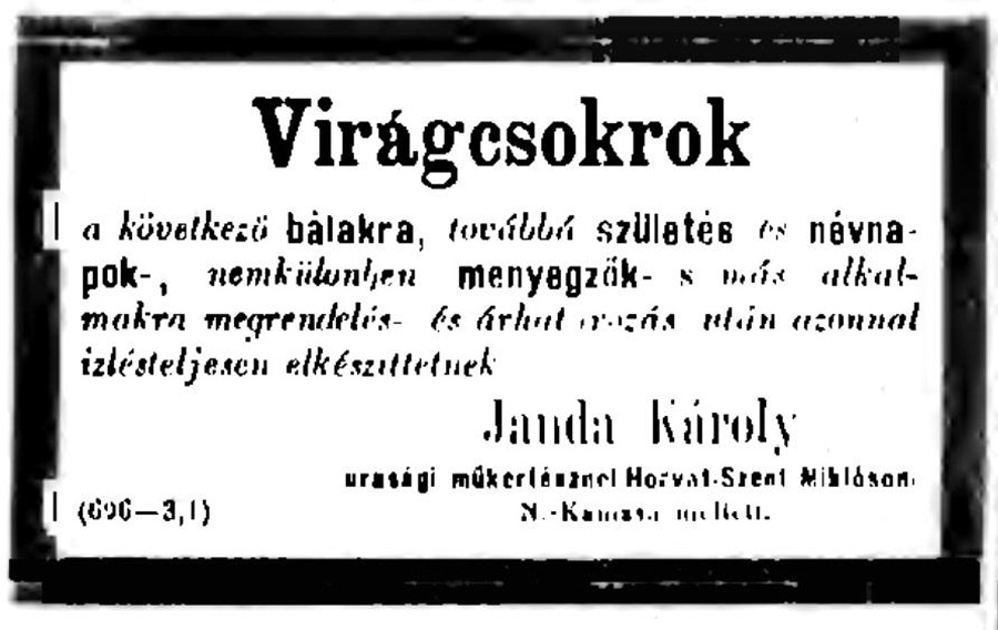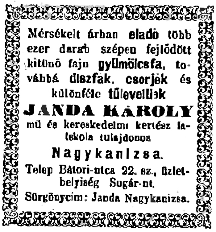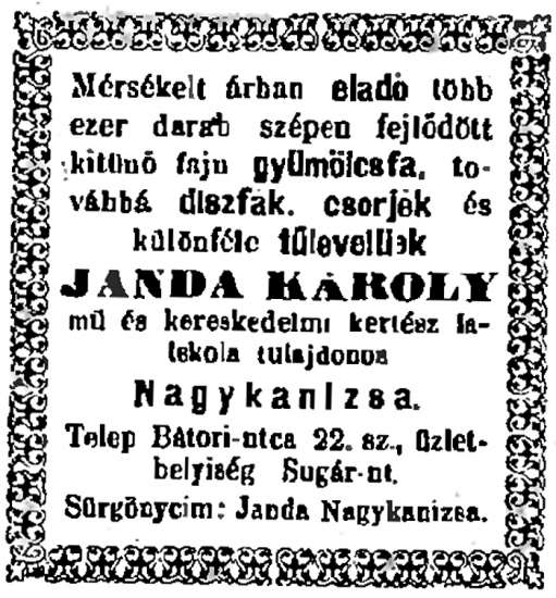Janda Nagycenkről (a Széchenyi kastély kertészetéből) került Kanizsa szomszédságába, majd a városba.
