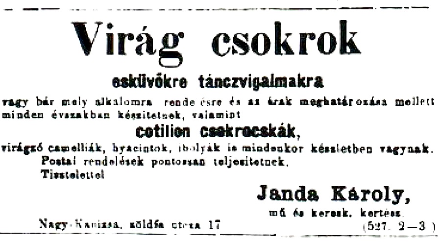 •Az utóbbi két ingatlanon tevékenykedett – már az 1870-es évektől – Janda Károly jó nevű, 1873-ban létrehozott kertészete.