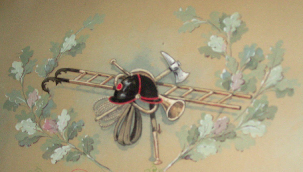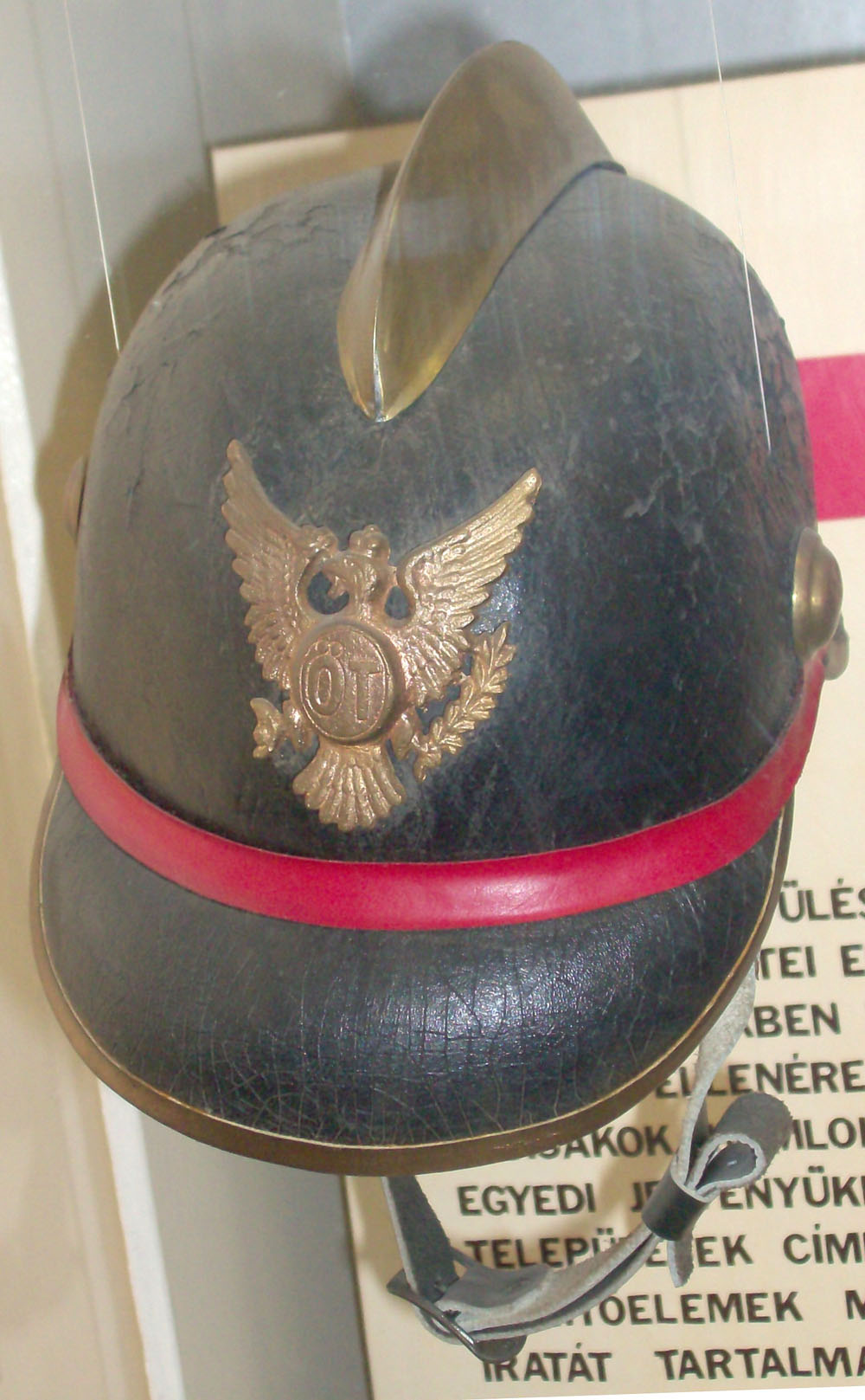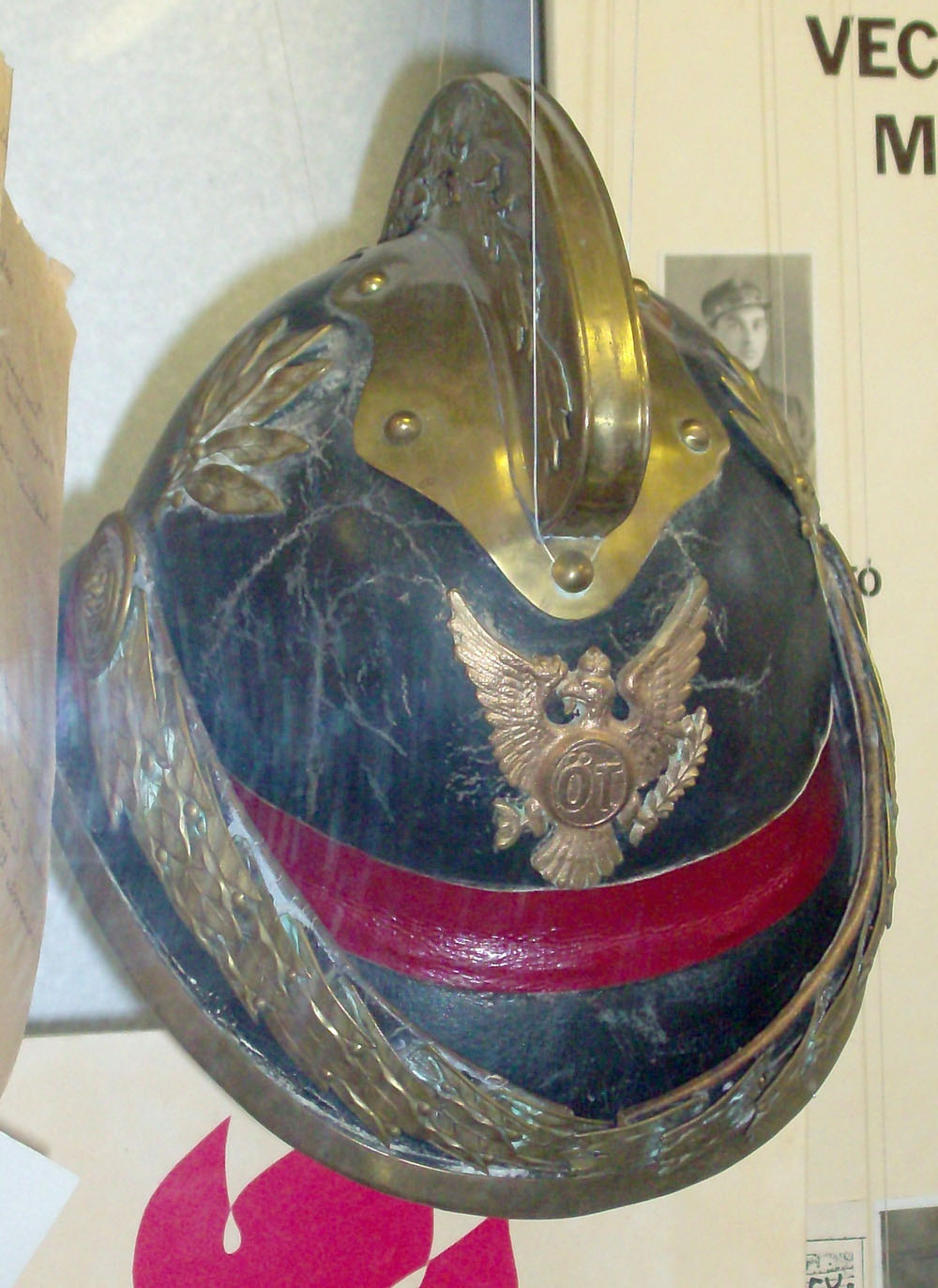 Az önkéntes tűzoltók sisakján a város akkori címere (középen ÖT betűkkel) jelezte személyük és tevékenységük hivatalos jellegét