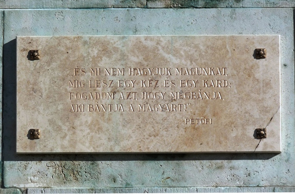 Az 1980-as évek legvégén a talapzat hátsó, megemelt részére újabb, de kisebb tábla került (a szabadságharcos) Petőfi másik versrészletével: