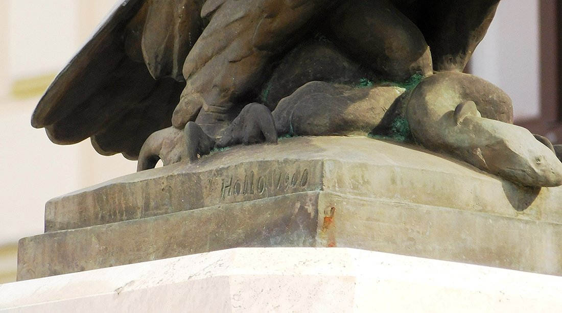 Levelet kaptam Zubreczki Dávidtól, egy blog szerzőjétől. Mint írta, kanizsai ismerőse mesélte, hogy gyermekként mindig jókat derültek a Deák téri turulmadár „Holló” feliratán. Érdeklődött, tudok-e valamiféle magyarázattal szolgálni. Meglepődtem; a feliratról sem hallottam, nemhogy az okáról. Még hitetlenkedtem is.