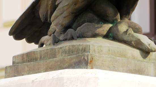 Világossá vált, hogy az alkotás 1900-ban született, alkotója pedig Holló. Minden bizonnyal az időszak neves szobrásza, Holló Barnabás (1865-1917). Vélekedésem erősítheti, hogy Vaján áll Vay Ádámnak a művész által 1906-ban készített síremléke. Az obeliszk tetején szintén egy turul. Akár testvére is lehetne a kanizsainak.