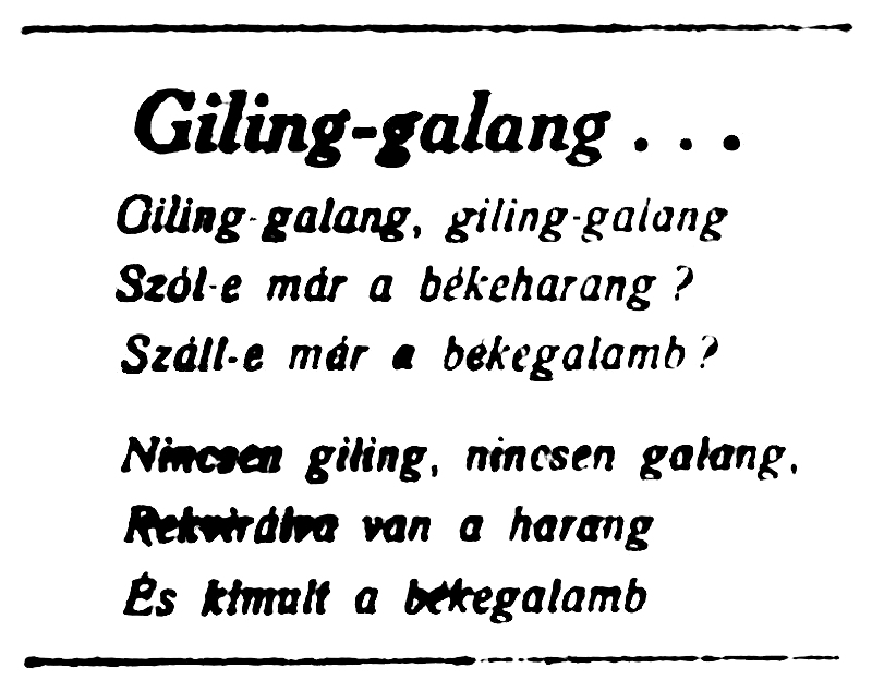 Ilyen ékes nyelvben gyönyörködhetünk valamennyi iparos műhelyben Nagykanizsán és az ország legnagyobb városaiban, sőt a falusi paraszt-iparosok portáján is. A legtöbb iparos egy kukkot sem tud németül; nem is sejti, hogy elkorcsosult német szavakat használ.”