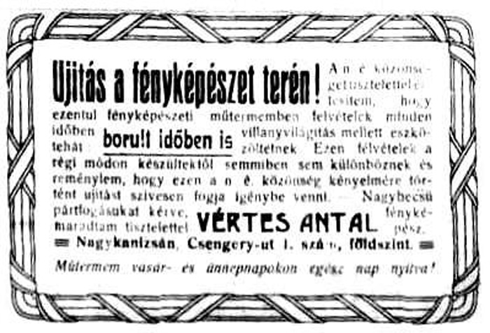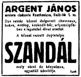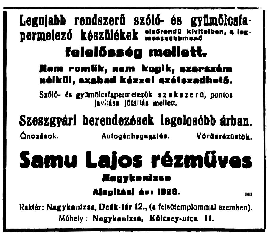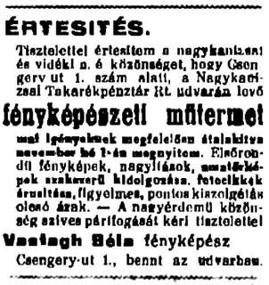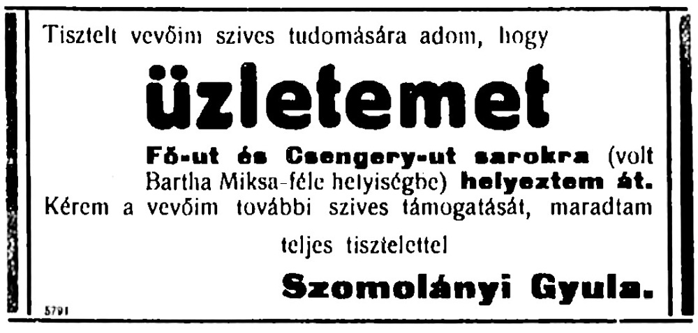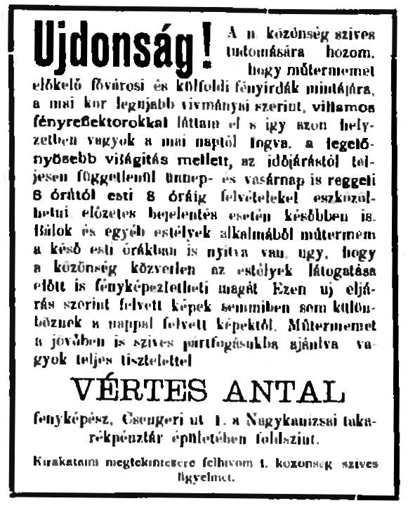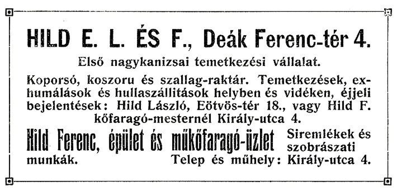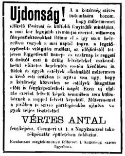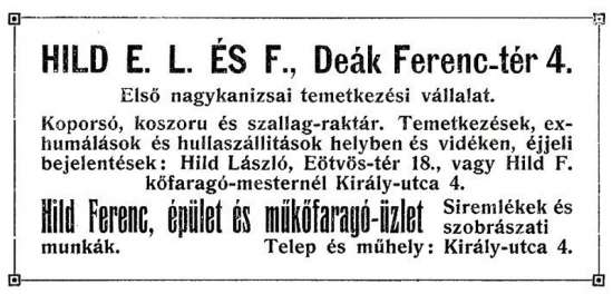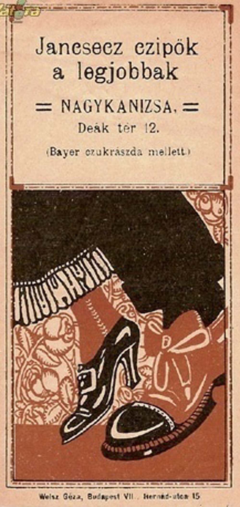 (A reklám szövege pontatlan: a műhely a Deák tér 15. szám alatt volt.)