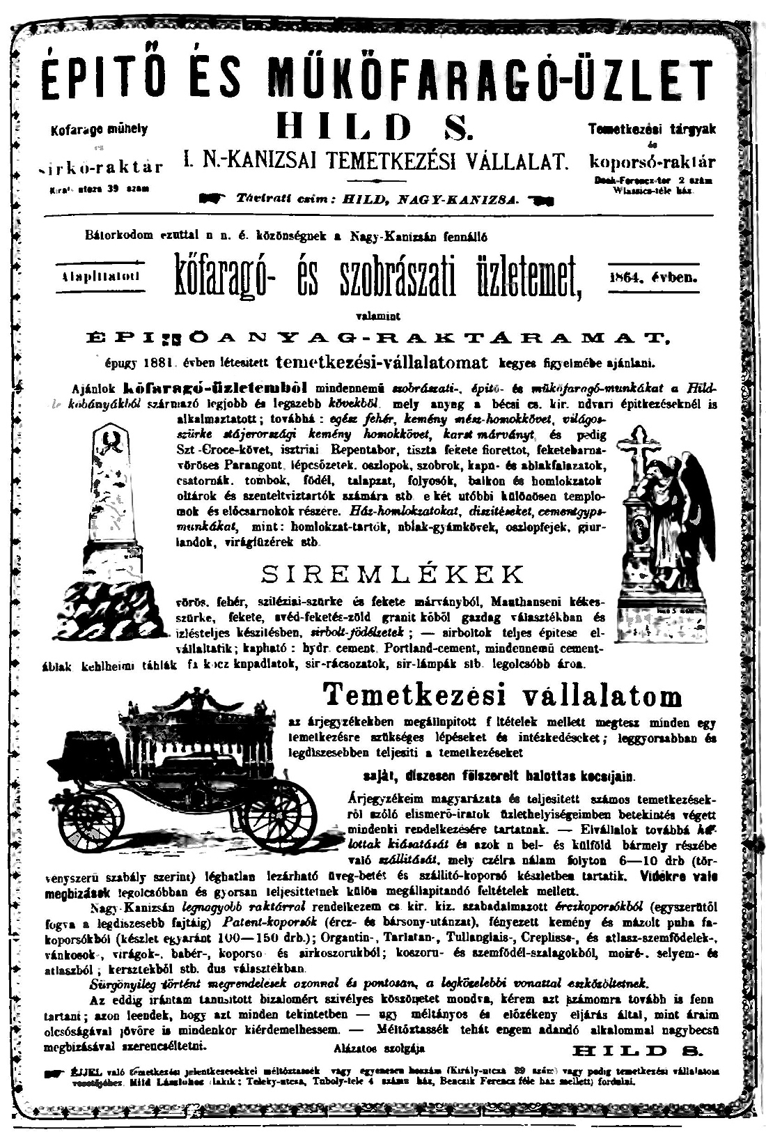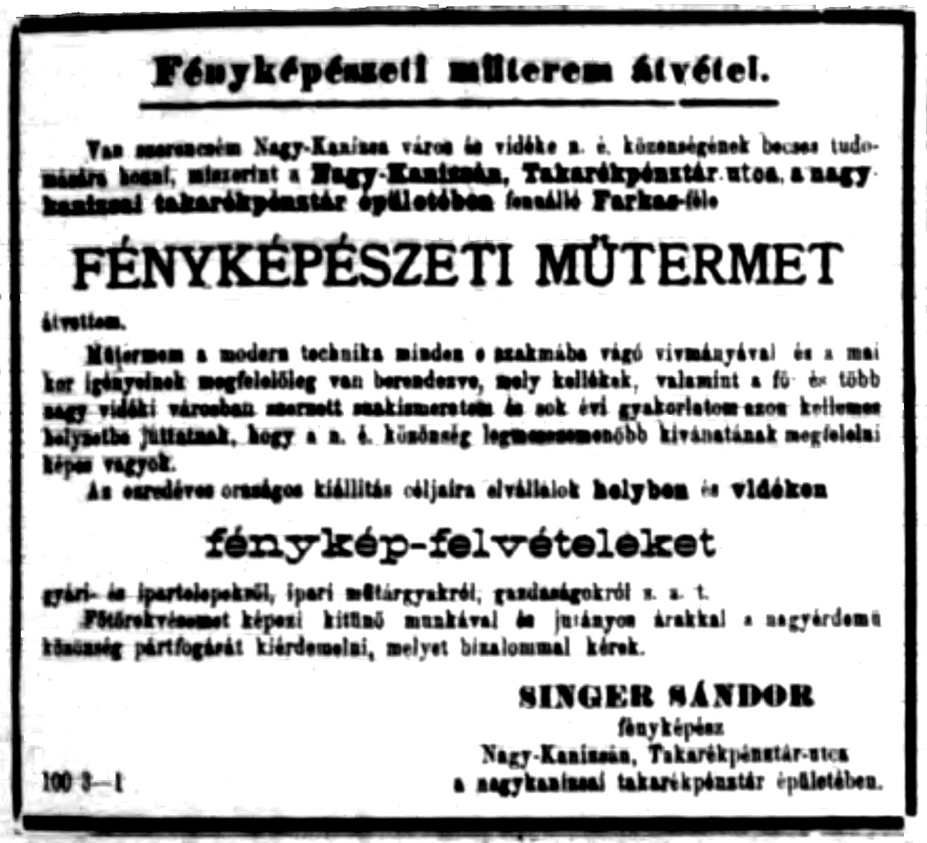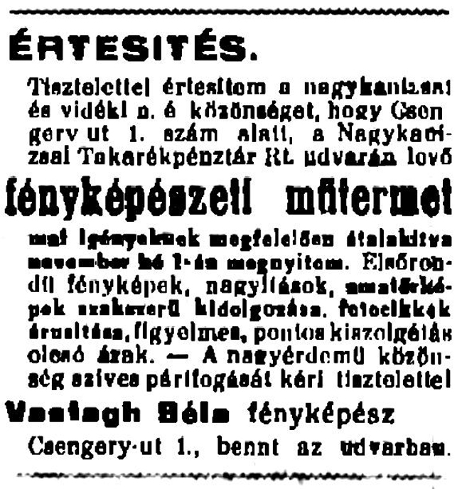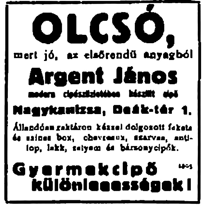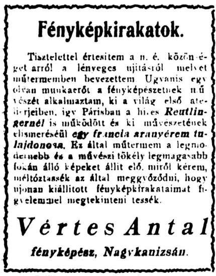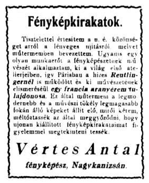 (A reklám szövege pontatlan: a műhely a Deák tér 15. szám alatt volt.)