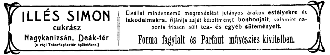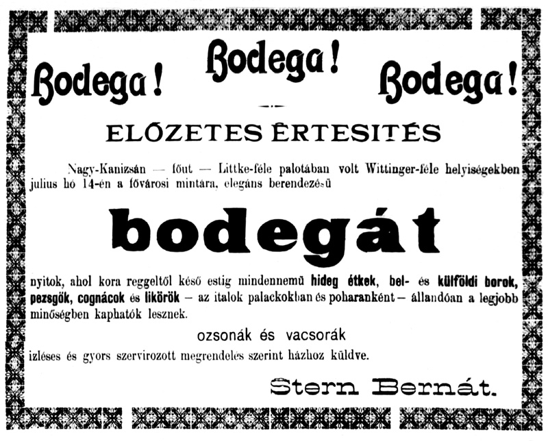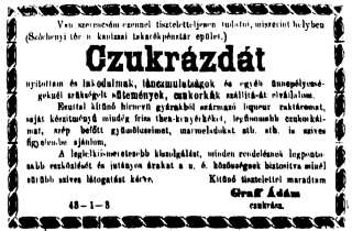 •A házban, annak térre néző oldala keleti felén kapott helyet Wittinger Antal cukrászdája. Helyiségeit 1894-ben – a vállalkozás megszűnése miatt – kiadásra hirdették.