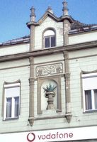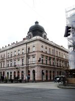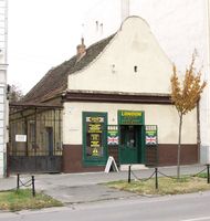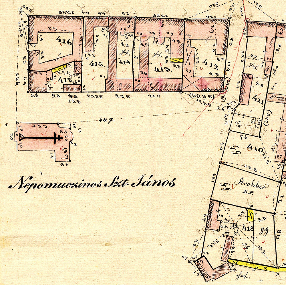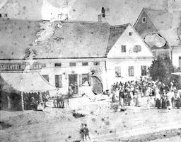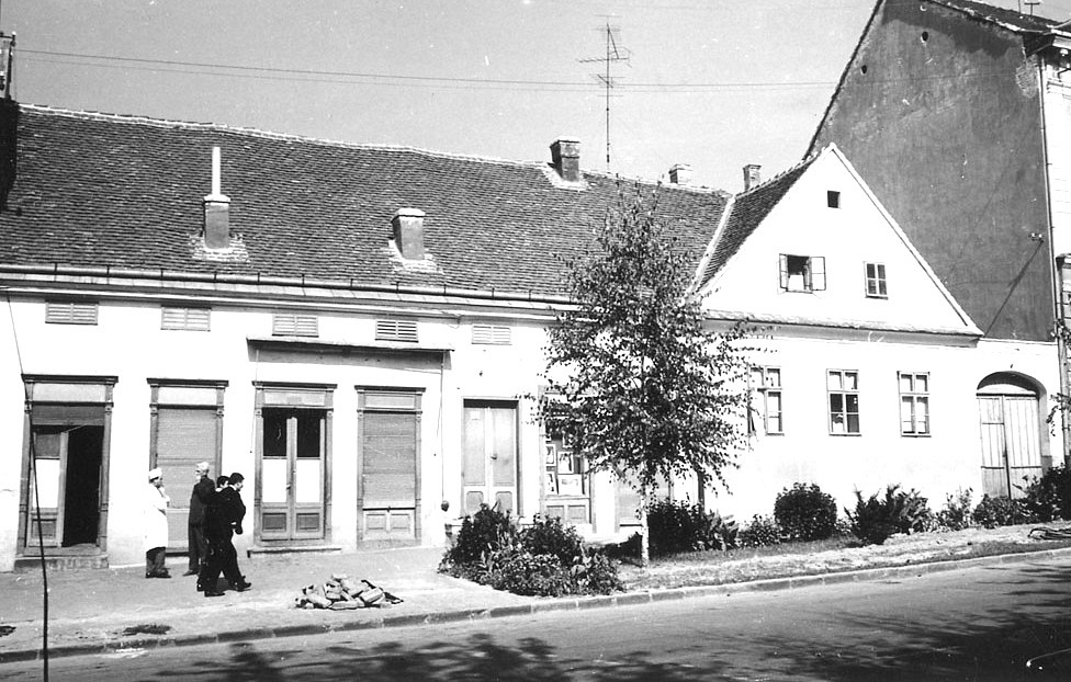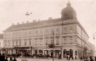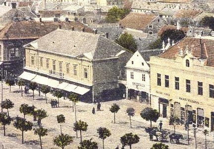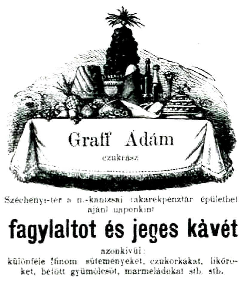 •A fenti, 1864-es fénykép szerint a házban (12. szám) volt Fasciatti Bertalan cukrászdája, illetve Leber Ignác cipész boltja. A cukrászda (1874-től Gerstner Adolf működtette) előtt ponyvával fedett terasz volt kialakítva.