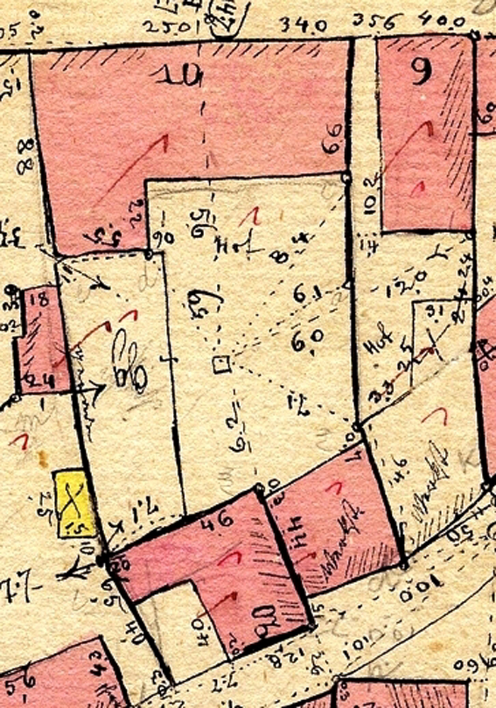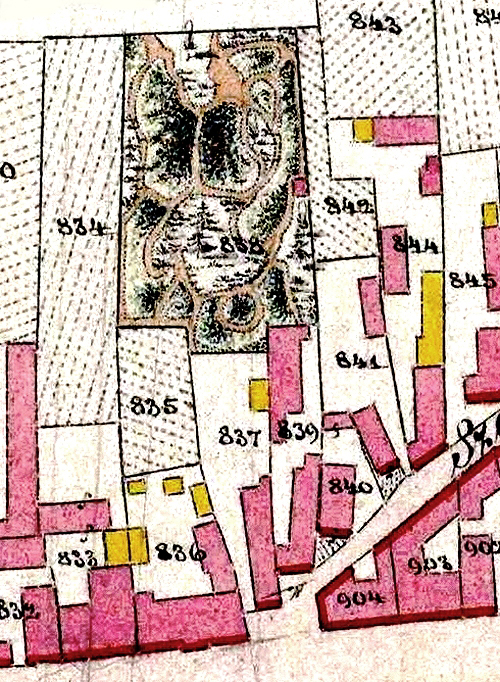 A székház (837) és kertje 1864-ben