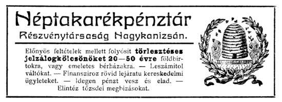•A városban 1906-ban alakult meg a Néptakarékpénztár Rt. A pénzintézetnek az épület emelete adott helyet.