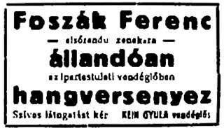1922-es hirdetés a Vendéglősök Lapjában