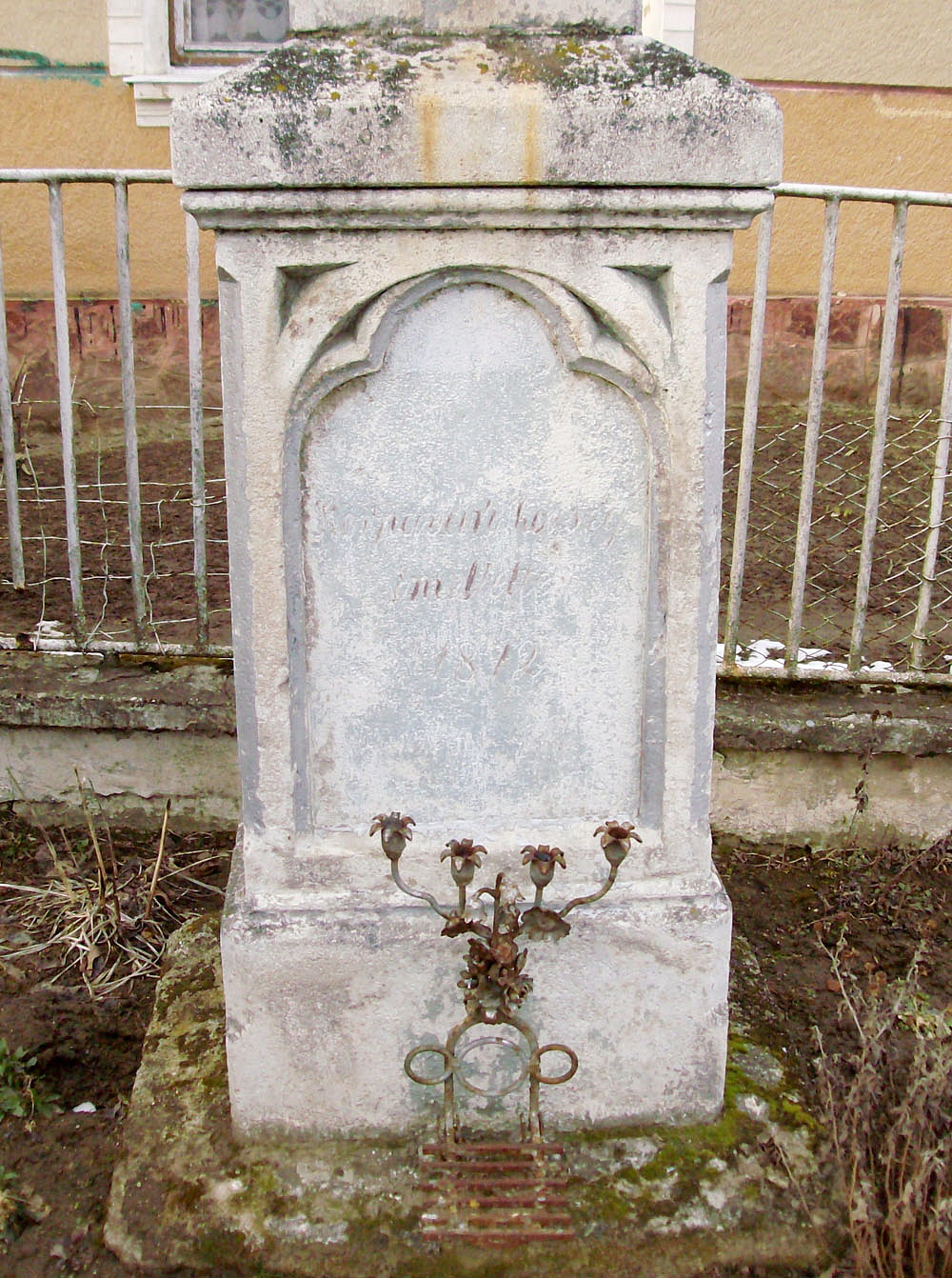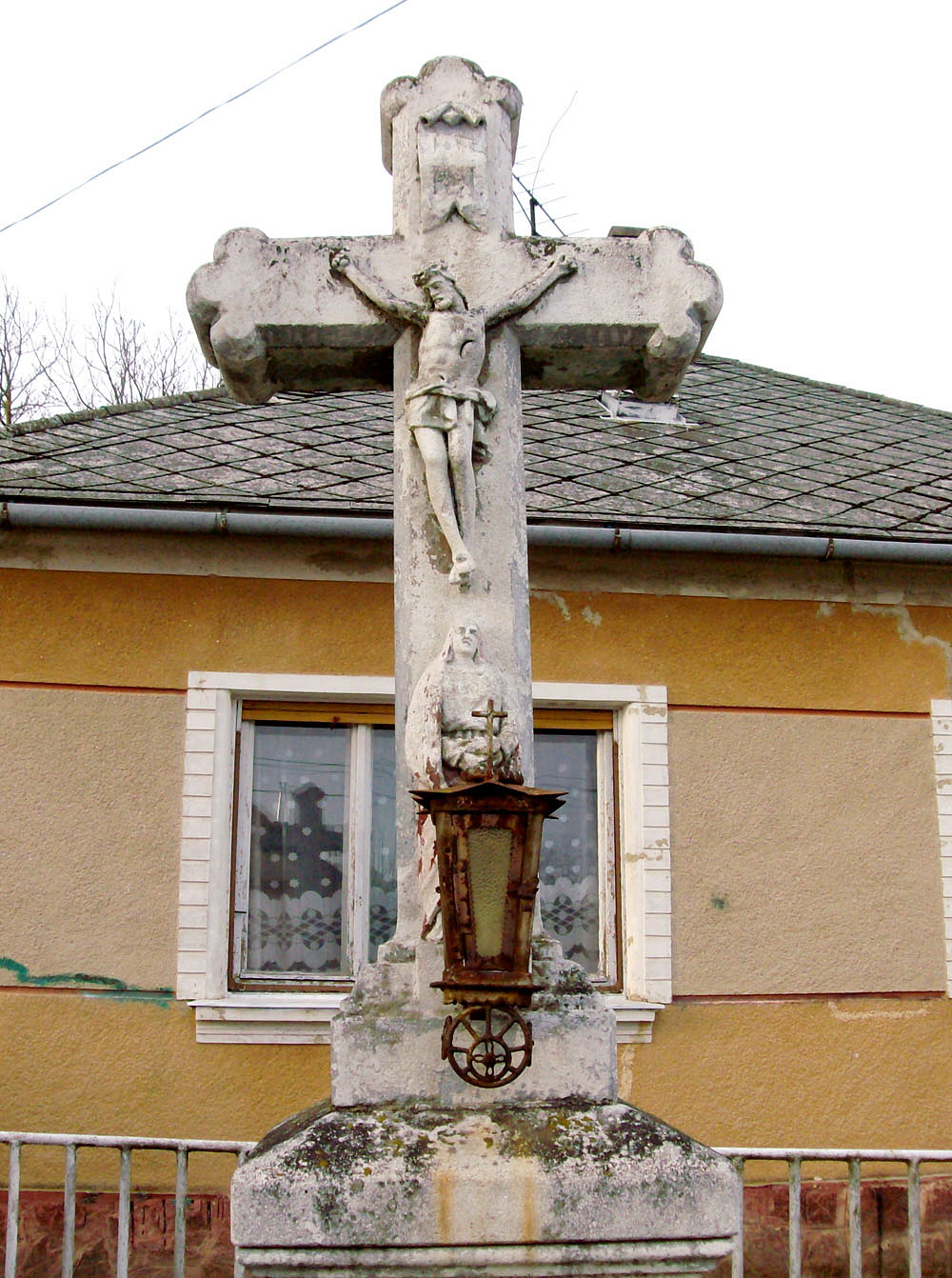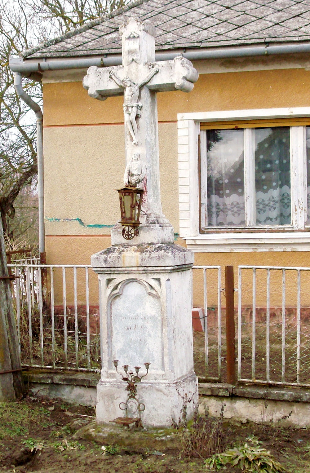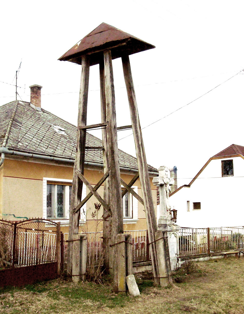 A harangláb (a harangot áthelyezték a 2003-ban épült templomba) és mellette az 1872-es fogadalmi kereszt