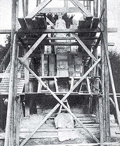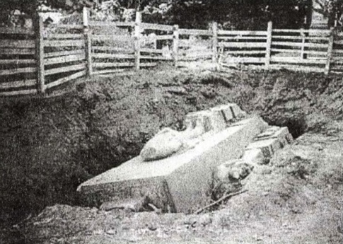 Végül az emlékművet darabokra törték, a részeket a mögötte ásott gödörben földelték el.