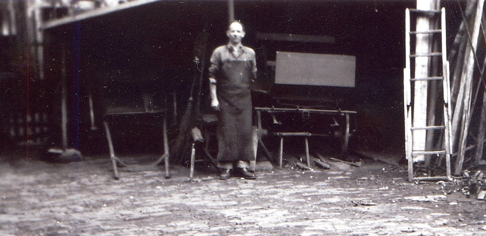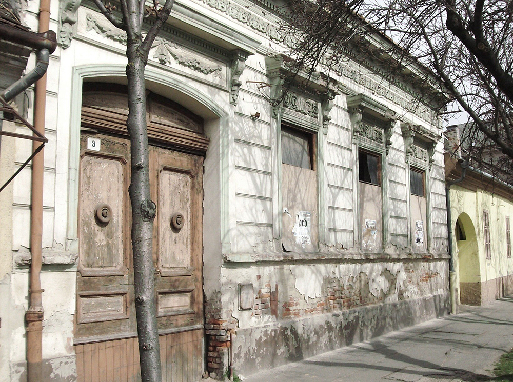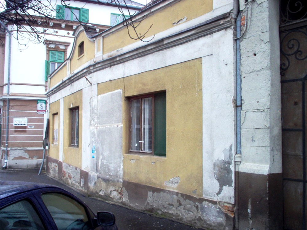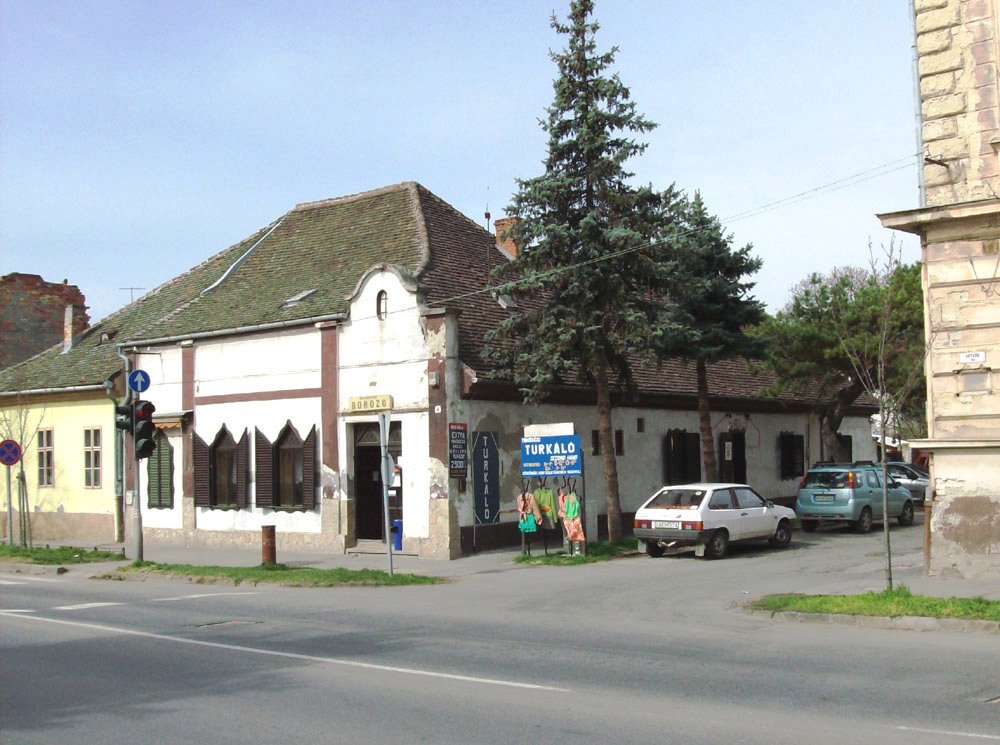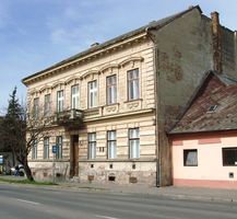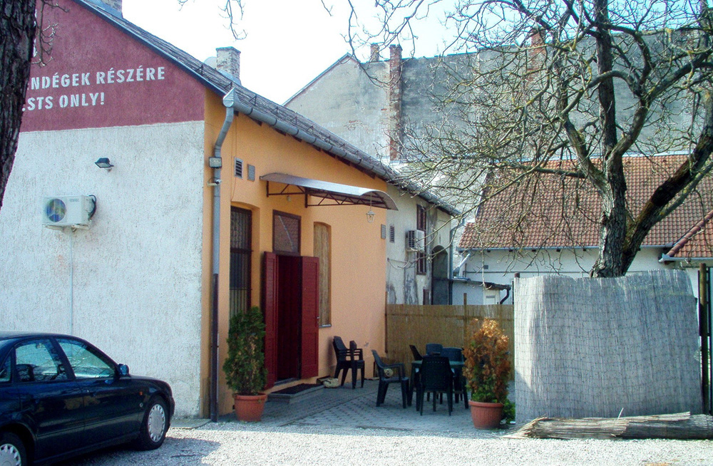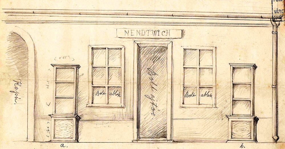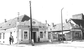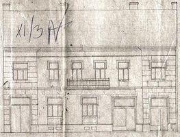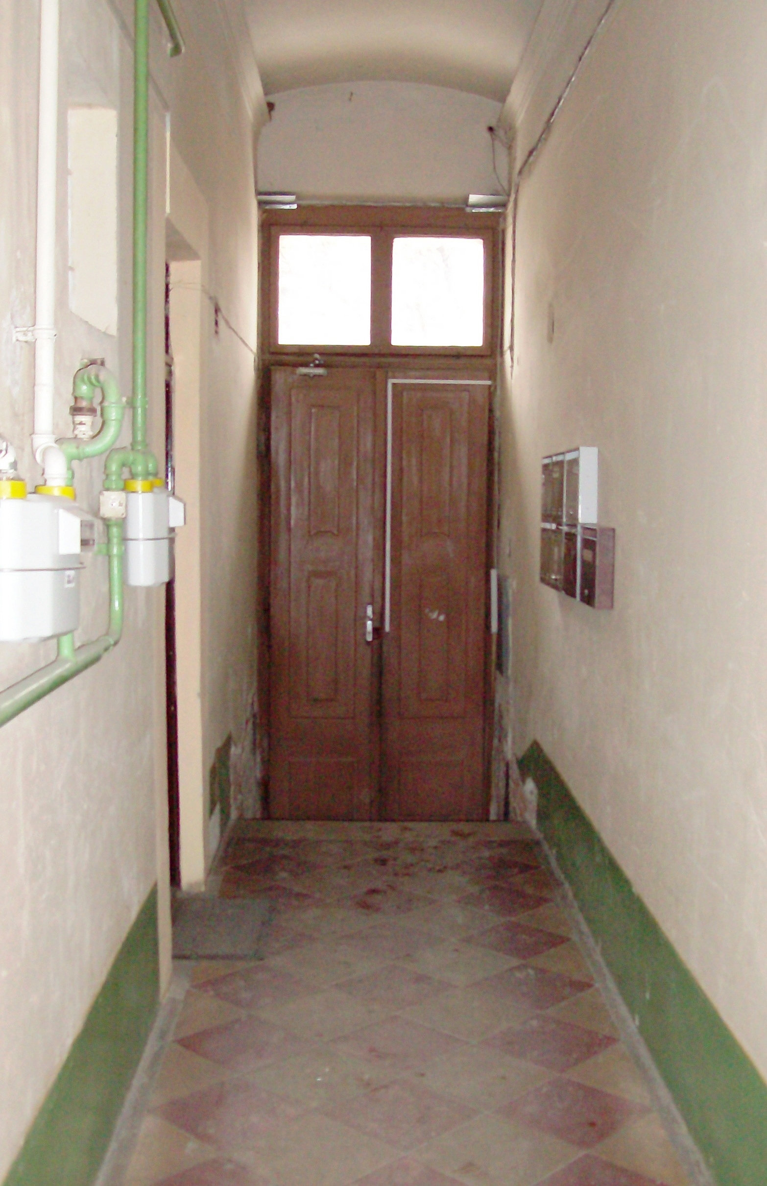 (Az utcai homlokzat közepén a hajdani Kudlik-féle műhely bejárata.)
