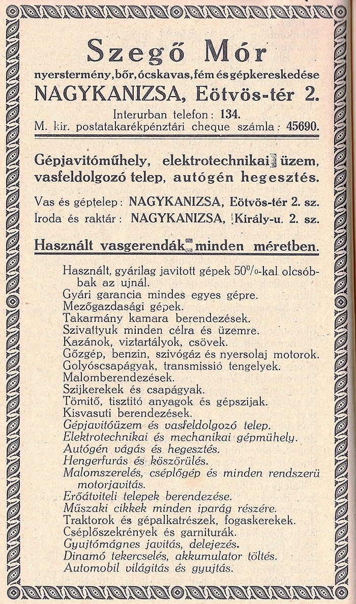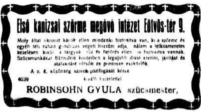 Apa (Mór) és fia (László) hirdetése 1931-ből