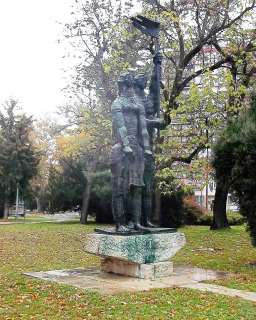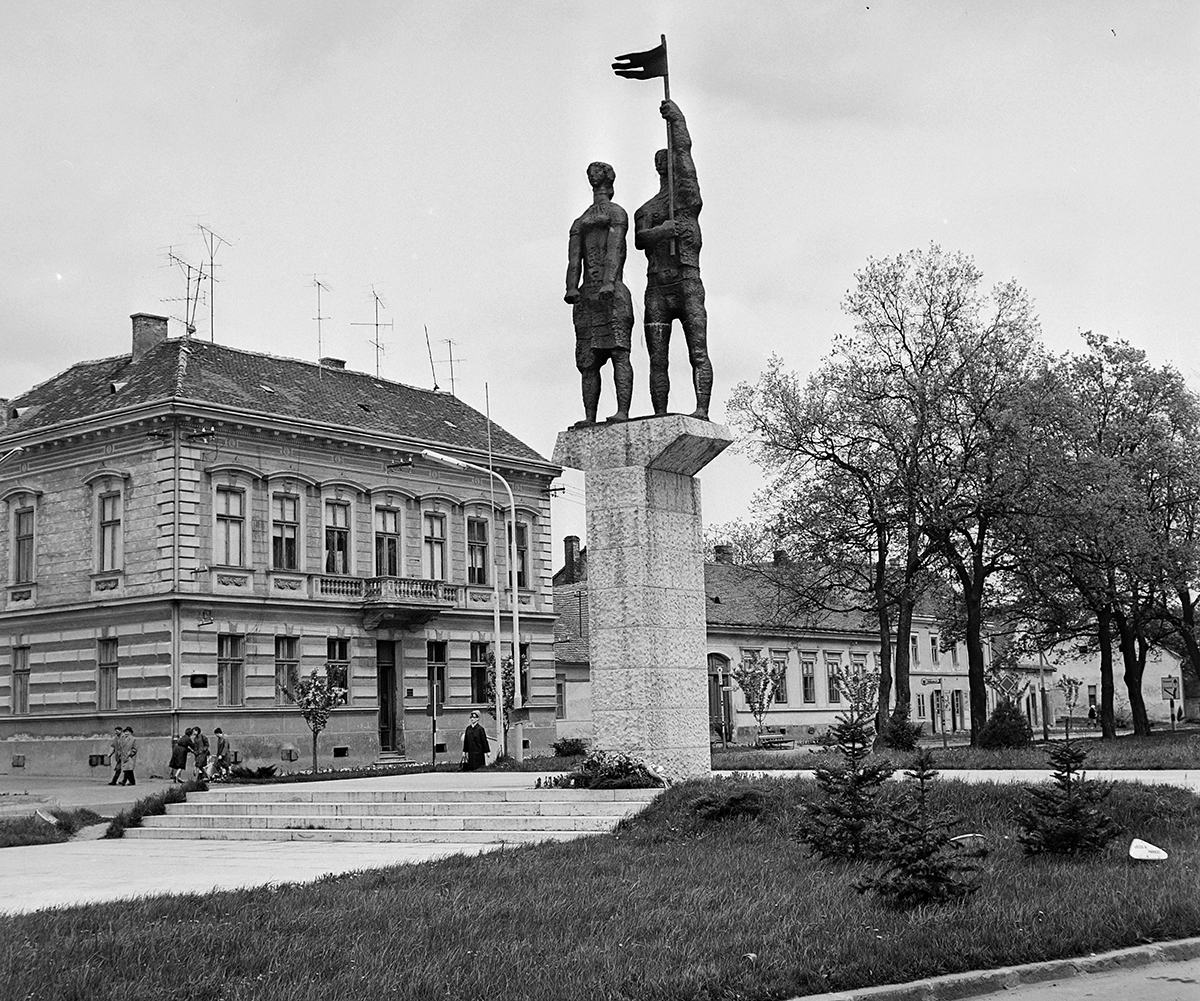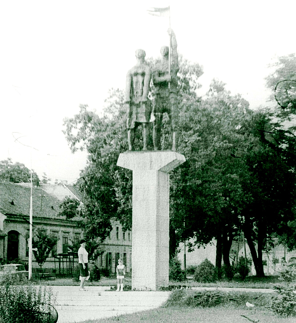 •Már 1947 elején javasolta a polgármester, hogy az irredenta emlékművet alakítsák a „munkásegység” jelképévé. A munkára Hübner Tibort, a mű készítőjét kérte volna fel. Végül a kanizsai Vörös Jánost keresték meg. Közben ismeretlenek megrongálták az alkotás két szoboralakját.