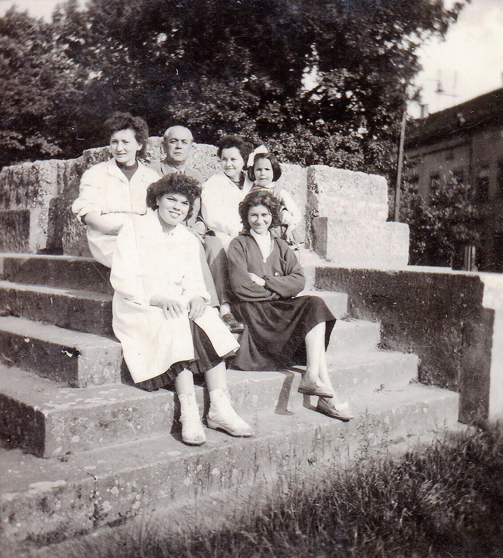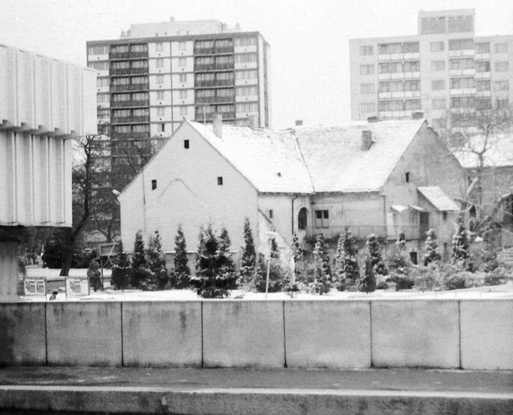 A háttérben az Eötvös tér 16. számú ház udvari homlokzata 1968 körül