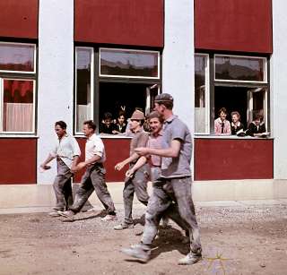 (A költözés időszaka. A „Landler” diákjainak egy része már a 2. számú gimnáziumban. A platánok még a faiskolában.)