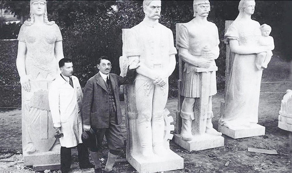Az emlékmű négy oldalának szobrait Rápolthy Lajos (1880-1954) mintázta meg.