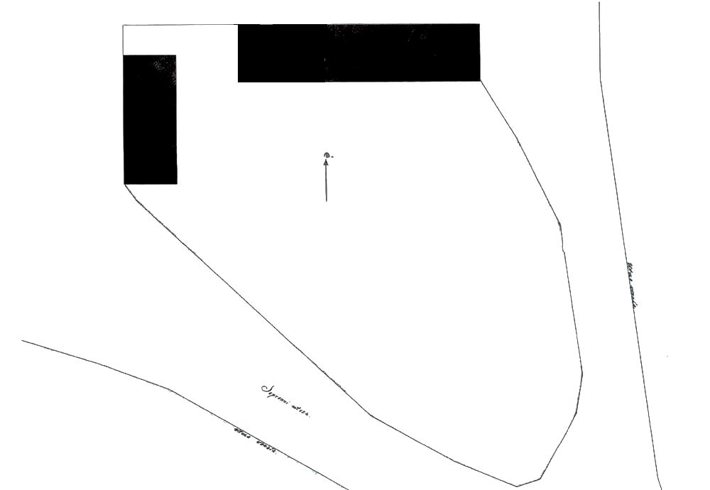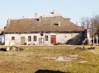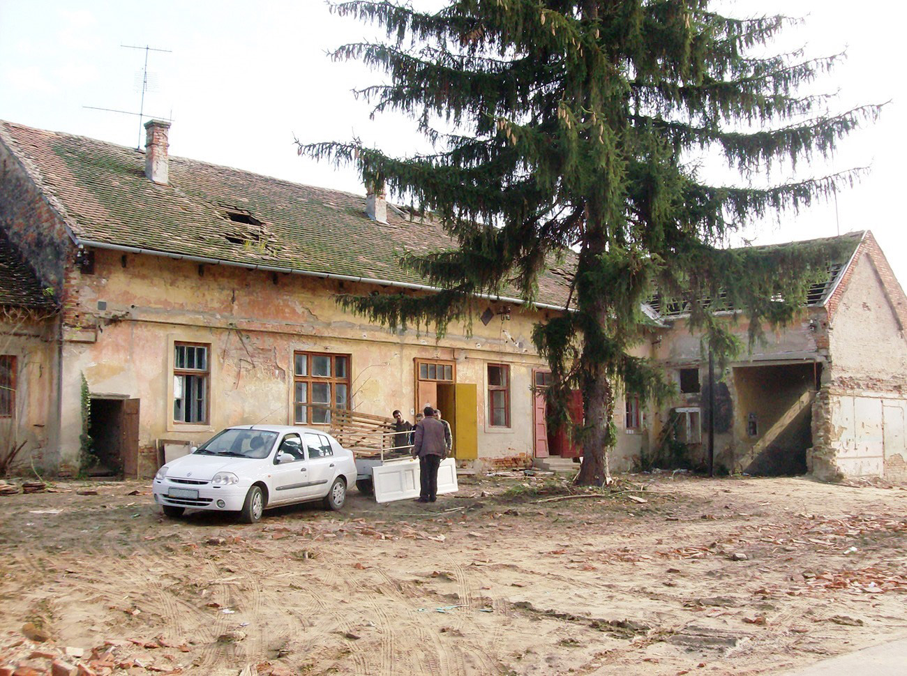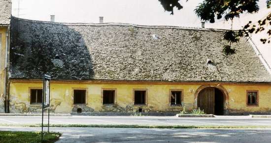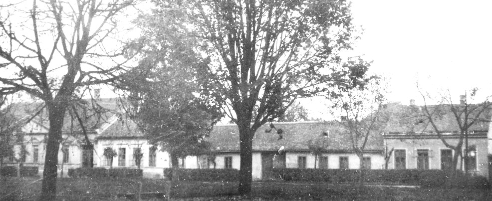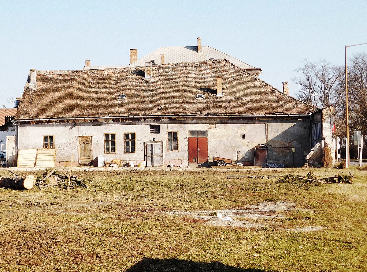 (A földszintes gazdasági épületet csak 1926-ban bontották le. Mindvégig külön állt a keleti oldalon, északkelet-délnyugat irányban húzódva, ferdén zárta le a térséget. Elődje, valamint a kapcsolódó cselédház és istálló 1858-ban leégett.)